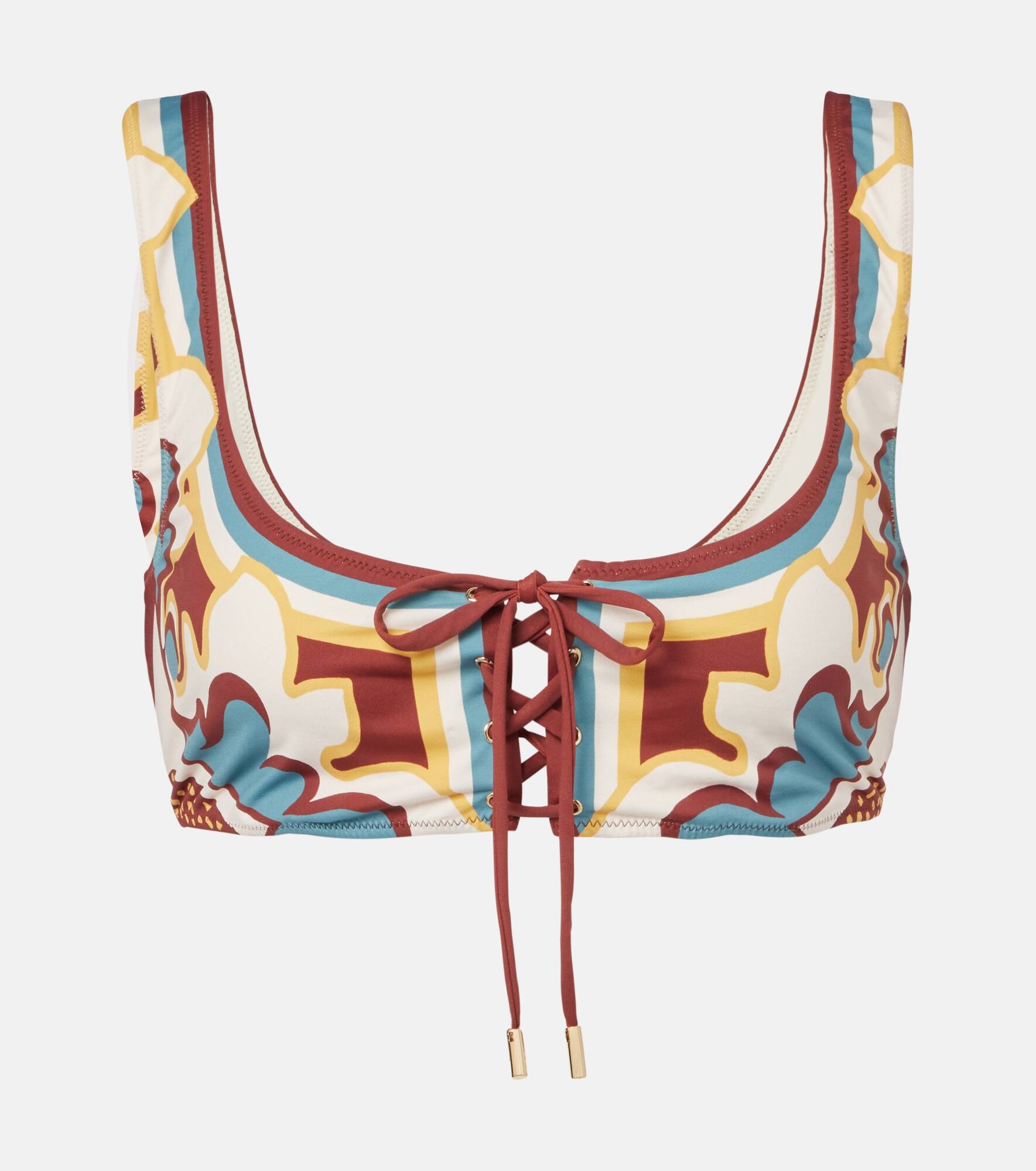 La DoubleJ works with top Milanese textile manufacturers to bring archival patterns to life on its signature eclectic styles. The Sunset floral bikini top is finished with a tie detail in the front. Product Details - Material: 74% polyamide, 26% elastane - Care instructions: hand wash - Made in Italy - Designer color name: Palazzo Placee - Item color: multicolor - Closure: self-ties - Item number: P01045017 Size & Fit - True to size - Unpadded Top - The model seen in the picture is 178cm-5'10", cup size B, and wearing a size XS