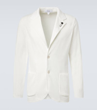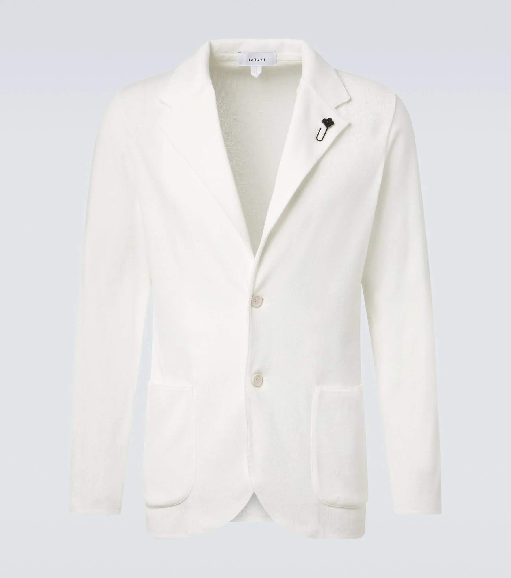 A family-owned business with a legacy of Italian-made tailoring, Lardini unceasingly strives to bring together tradition and innovation. This blazer is made in Italy from pure cotton and has a safety pin detail on one lapel. Product Details - Material: 100% cotton - Care instructions: dry clean - Made in Italy - Designer color name: White - Item color: white - Item number: P01136379 Size & Fit - True to size - Regular fit - Stretchy fabric - Falls below the hip - The model in the picture is 185cm-6'1" and wearing a size L