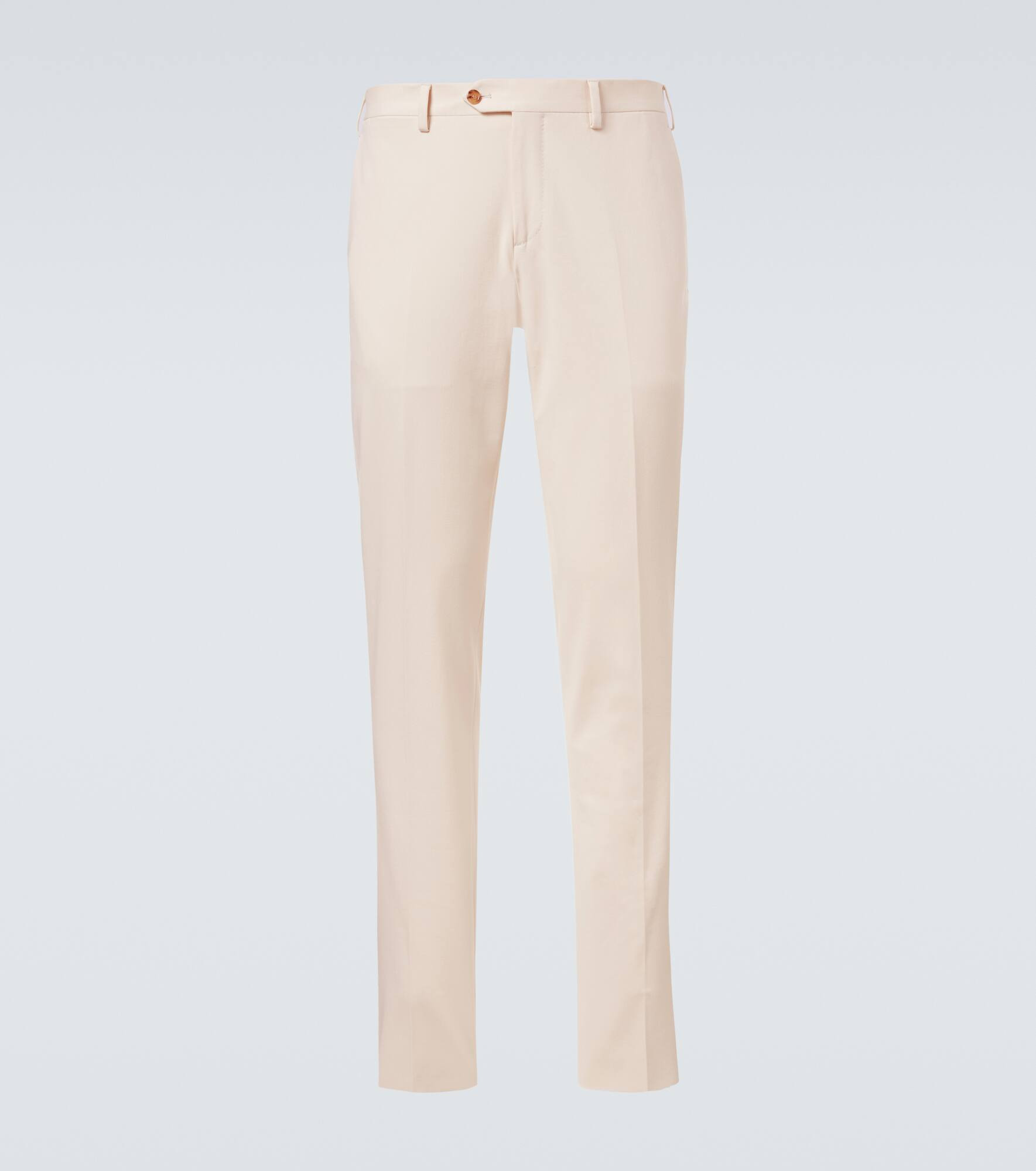 A family-owned business with a legacy of Italian-made tailoring, Lardini unceasingly strives to bring together tradition and innovation. Crafted from a cotton-blend, these straight pants feature side-slit and back pockets. Product Details - Material: 93% cotton, 7% elastane - Care instructions: dry clean - Made in Italy - Designer color name: Cream - Item color: beige - Closure: zipper fly, button fastening - Pockets: side slit pockets, back pockets - Belt loops - Item number: P01066670 Size & Fit - True to size - Non-stretchy fabric - Straight leg - Unhemmed for tailoring - Height of model is 189cm-74.5" and wears a size 50
