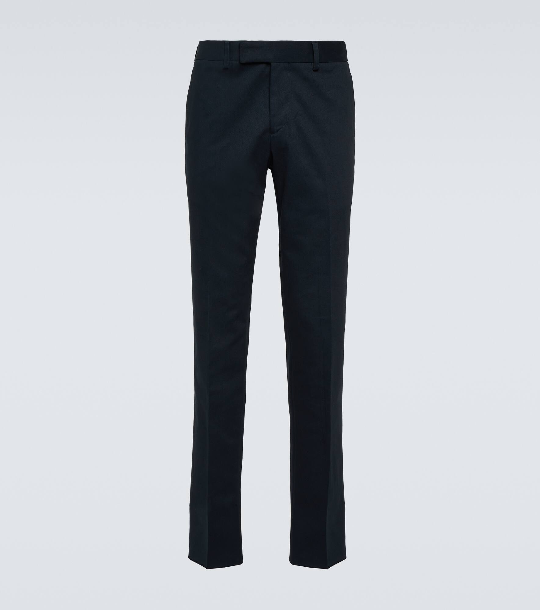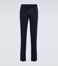 Product Details - Material: 98% cotton, 2% elastane - Care instructions: do not wash - Made in Italy - Closure: zipper fly, button and hook fastenings - Pockets: side slit pockets, back pockets - Belt loops - Material II: 65% polyester, 35% cotton - Item number: P00949396 Size & Fit - True to size - Non-stretchy fabric - Slim-leg - Unhemmed for tailoring - The model in the picture is 185cm-6'1" and wearing a size 48