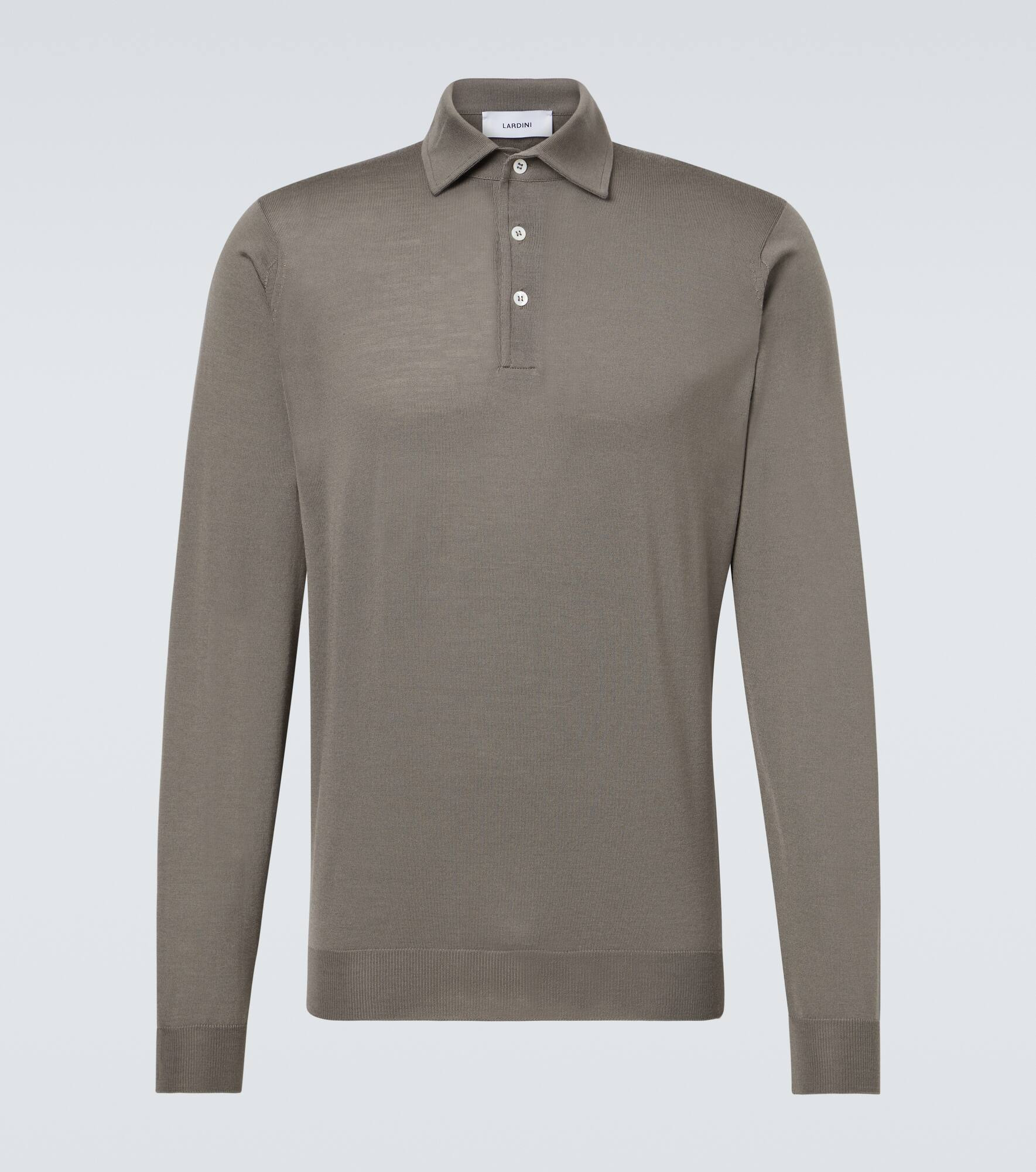 A family-owned business with a legacy of Italian-made tailoring, Lardini unceasingly strives to bring together tradition and innovation. This polo shirt is made from ribbed-knit virgin wool. Product Details - Material: 100% virgin wool - Care instructions: dry clean - Made in Italy - Designer color name: Beige - Item color: gray - Collar: polo collar - Cuff: ribbed - Hem: ribbed - Closure: partially buttoned front - Item number: P01066652 Size & Fit - True to size - Straight fit - Stretchy fabric - Falls to the hip - Height of model is 189cm-74.5" and wears a size L