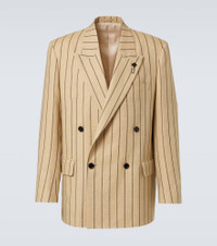 Striped double-breasted linen and wool blazer