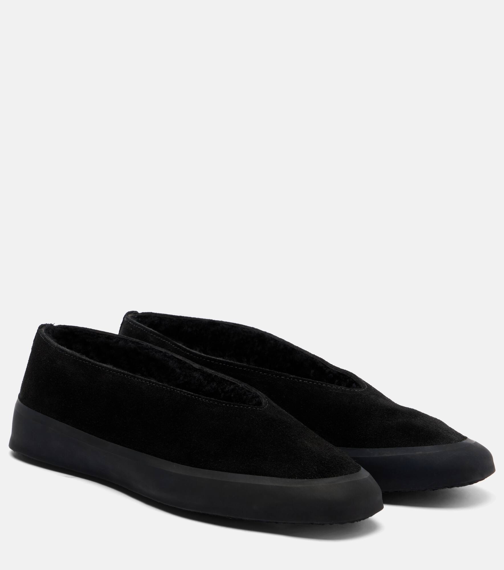 London-based brand Le Monde Beryl delivers modern interpretations of classic shoe styles. The Apres Ski ballet flats are made from black suede with tonal shearling lining for cozy comfort during even the coldest days. Product Details - Upper: leather (suede) - Lining: shearling - Sole: shearling insole, rubber sole - Toe shape: almond toe - Made in Italy - Includes: shoe box, dust bag - Designer color name: Black - Item color: black - Item number: P01081351 Size & Fit - Fits slightly small to size - we recommend trying a half size larger - European sizes - 2,5cm-1" platform (size EU 38)