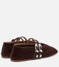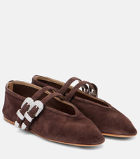 Le Monde Beryl’s Claudia ballet flats are crafted in Italy from soft suede. Featuring an almond toe and delicate two-buckle fastening, this timeless pair brings understated charm and versatile elegance to everyday and occasion dressing. Product Details - Upper: leather (suede) - Lining: leather - Sole: leather insole, leather and rubber sole - Toe shape: almond toe - Made in Italy - Includes: dust bag, shoe box - Designer color name: Chocolate - Item color: brown - Hardware color: silver - Closure: buckle fastening - Item number: P01081329 Size & Fit - Fits slightly large to size - we recommend trying a half size smaller - European sizes