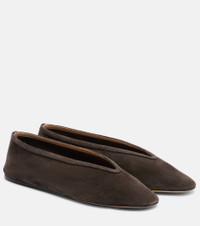 The Luna ballet flats from Le Monde Beryl are crafted in Italy from supple suede and feature cushioned leather insoles and leather piping. The pair are complete with almond-shaped toes for a timeless look. Product Details - Upper: calf leather (suede) - Lining: calf leather - Sole: leather insole, leather and rubber sole - Toe shape: almond toe - Made in Italy - Includes: shoe box - Designer color name: Pepe - Item color: brown - Item number: P01081327 Size & Fit - True to size - European sizes