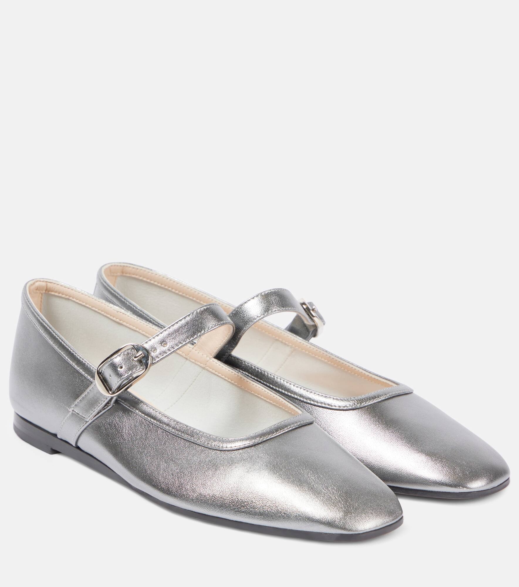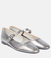 Metallic leather Mary Jane flats