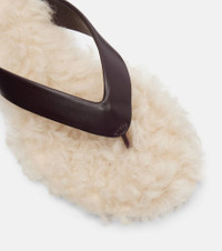 Micro Wedge Thong / Plum Leather with Latte Shearling