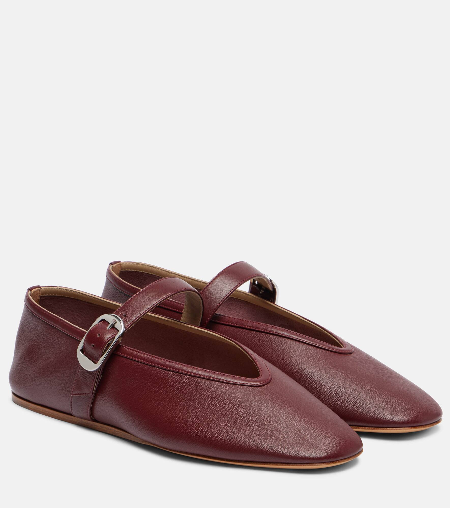 Le Monde Beryl’s Stella ballet flats are crafted in Italy with smooth leather. Featuring a round toe and delicate buckle fastening, the versatile pair brings a softly structured finish to everyday dressing and beyond. Product Details - Upper: leather - Lining: leather - Sole: leather insole, leather and rubber sole - Toe shape: round toe - Made in Italy - Includes: dust bag, shoe box - Designer color name: Rouge - Item color: burgundy - Item number: P01081345 Size & Fit - True to size - European sizes