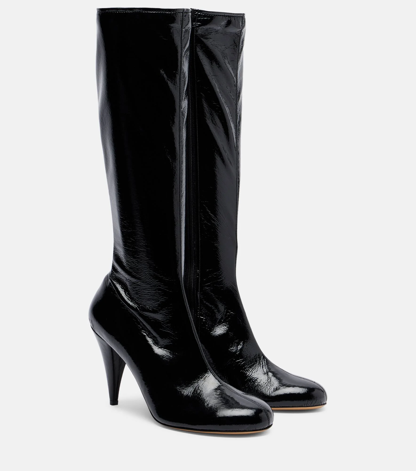 Each pair from Le Monde Beryl is thoughtfully made in Italy using long-standing artisanal techniques. Designed in collaboration with creative consultant Kim Sion, the Madison patent leather boots feature knee-high silhouettes with 95mm cone heels. Product Details - Upper: leather - Lining: fabric - Sole: leather insole and sole - Color: black - Toe shape: almond toe - Made in Italy - Includes: shoe box, dust bag - Designer color name: Black - Trim: leather - Closure: zipped side - Item number: P01143171 Size & Fit - True to size - For narrow feet, we recommend trying a half size smaller - European sizes - 9cm-3.5" heel - 35cm-14" shaft height (size EU 38) - 30cm-12" shaft width (size EU 38) - shaft width measured on largest part of boot