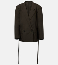 Inspired by traditional menswear codes, this blazer from Lemaire is made from smooth cotton and silk and cut to a generous double-breasted silhouette. It features a slender self-tie detail to accent the waistline. Product Details - Material: 80% cotton, 20% silk - Care instructions: hand wash - Made in Slovakia - Designer color name: Dark Espresso - Item color: brown - Pockets: breast pocket, slit pockets - Closure: double-breasted - Detachable belt - Item number: P01068608 Size & Fit - True to size - Shoulder pad inserts - Loose fit, comes with belt - Non-stretchy fabric - Falls below the hip - The model seen in the picture is 178cm-5'10" and wearing a size FR 36