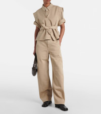 Belted cotton twill denim vest