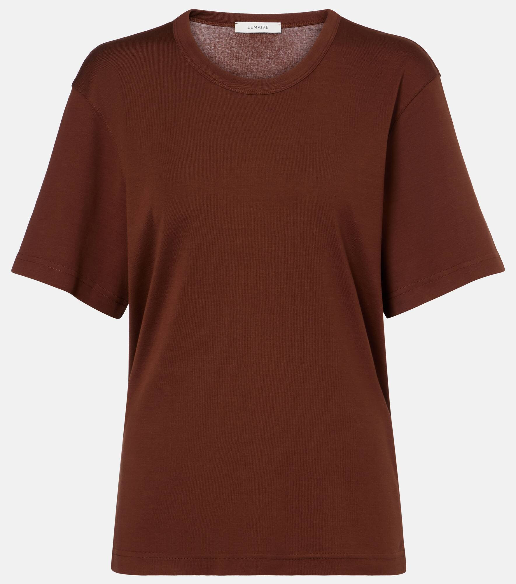 Designed to transcend seasons and trends, Lemaire's styles strike the perfect balance between quality and functionality. This T-shirt is crafted from cotton jersey and features dropped shoulders for a relaxed silhouette. Product Details - Material: 100% cotton - Care instructions: machine wash at 30 degrees - Made in Portugal - Designer color name: Brunette - Item color: brown - Collar: crewneck - Item number: P01089317 Size & Fit - True to size - Dropped shoulders - Straight fit - Slightly stretchy fabric - Falls to the hip - The model seen in the picture is 178cm-5'10" and wearing a size XS