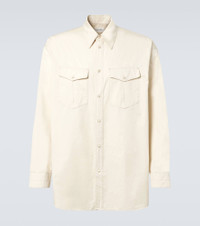 Designed to transcend seasons and trends, Lemaire's styles strike the perfect balance between quality and functionality. Made from cotton satin with a fluid texture, this Western shirt feature signature chest pockets with flaps and single pleats. Product Details - Material: 100% cotton - Care instructions: hand wash - Made in Tunisia - Designer color name: Creamy White - Item color: ivory - Pockets: patch pockets - Item number: P01013256 Size & Fit - Fits large to size - we recommend trying one size smaller - Dropped shoulders - Designed for a loose fit - Non-stretchy fabric - Falls to the hip - Height of model is 190cm-75" and wears a size IT 50
