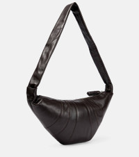 One of our editors' favorite bag designs from Lemaire, the Croissant, has a contemporary curved silhouette. It's made from dark brown nappa leather that is carefully topstitched and finished with a knotted shoulder strap. Product Details - Made in Spain - Closure: zipped top - Designer color name: Dark Chocolate - Internal details: fabric lining - Comes with dust bag - Leather shoulder strap - Material: lamb leather - Item number: P00704736 Size & Fit - Height 18cm-7" - Max. width 46cm-18" - Depth 6cm-2.5" - Length shoulder strap 99cm-39"