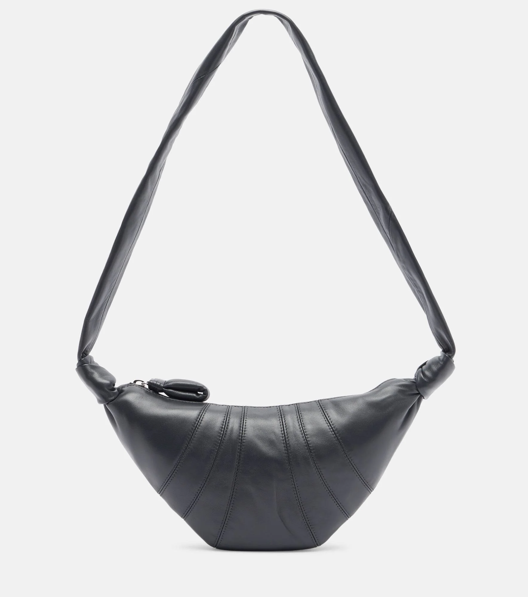 Meet your new favorite design from Lemaire: the Croissant bag. Featuring a knotted shoulder strap, this Small style is made from blue leather that’s topstitched to resemble its namesake pastry. Product Details - Material: leather - Lining: fabric - Made in Spain - Color: blue - Designer color name: Granite Blue - Closure: zipped top - Internal details: internal slot pocket - Includes: dust bag - Item number: P01136818 Size & Fit - Height 18cm-7" - Min. width 11cm-4.5" - Max. width 35cm-14" - Depth 4cm-1.5" - Length shoulder strap 98cm-38.5"