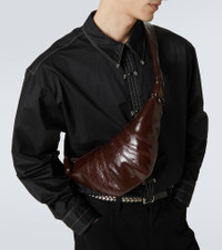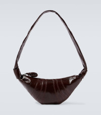 Meet your new favorite design from Lemaire: the Croissant bag. Featuring a knotted shoulder strap, this Small style is made from Chocolate Fondant leather that’s topstitched to resemble its namesake pastry. Product Details - Material: leather - Lining: cotton - Made in Tunisia - Designer color name: Chocolate Fondant - Item color: burgundy - Internal details: internal slot pocket, single compartment - Closure: zipped top - Hardware color: silver - Includes: dust bag - Item number: P01071402 Size & Fit - Height 17.5cm-7" - Width 35cm-14" - Length shoulder strap 93cm-36.5"