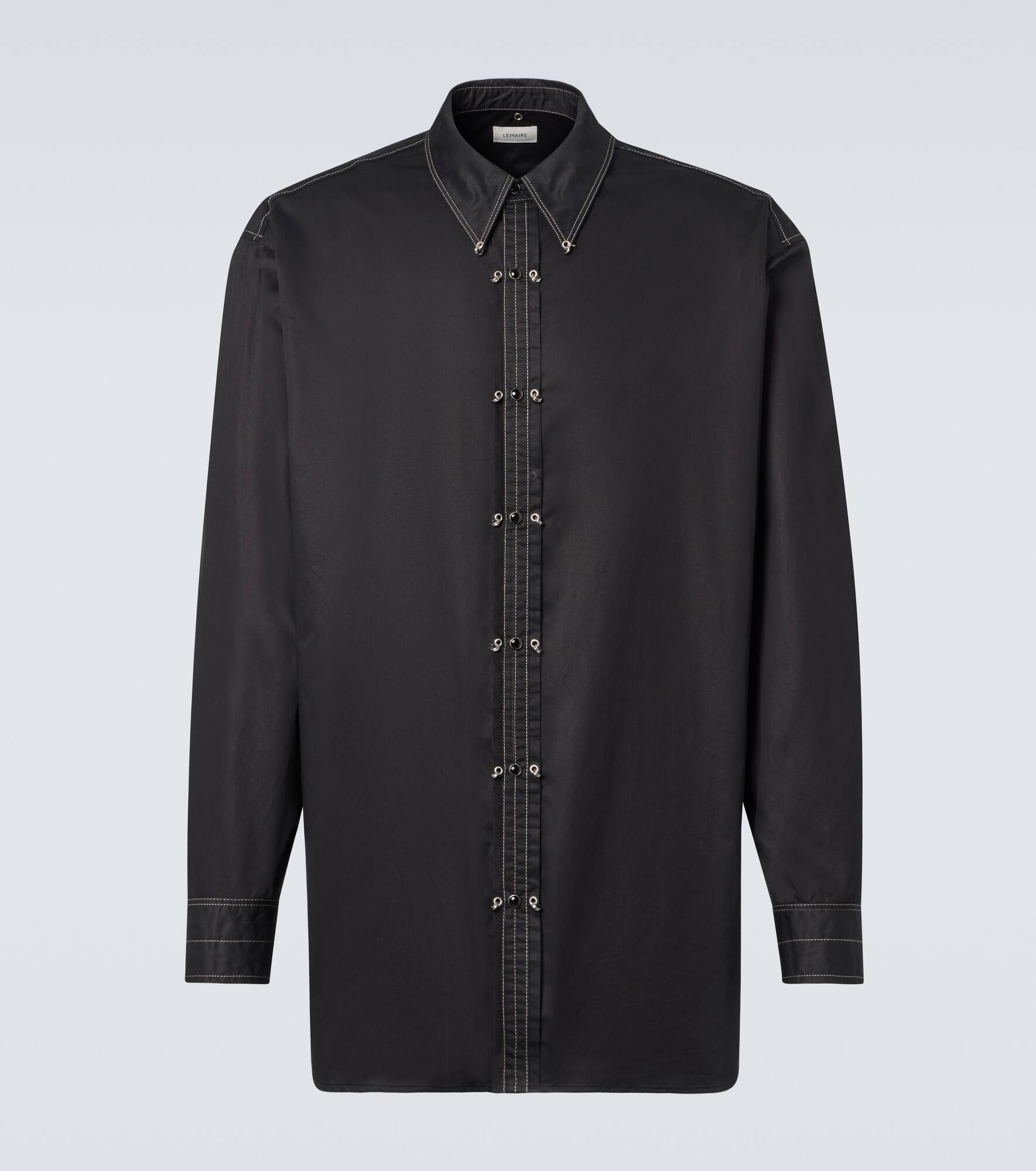 Designed to transcend seasons and trends, Lemaire's styles strike the perfect balance between quality and functionality. This shirt is made from cotton satin with metal and mother-of-pearl snap-button closure as well as rivet embellishments. Product Details - Material: 100% cotton - Care instructions: machine wash cold - Made in Portugal - Designer color name: Black - Item color: black - Item number: P01013249 Size & Fit - True to size - Dropped shoulders - Designed for a loose fit - Non-stretchy fabric - Falls below the hip - Height of model is 190cm-75" and wears a size L