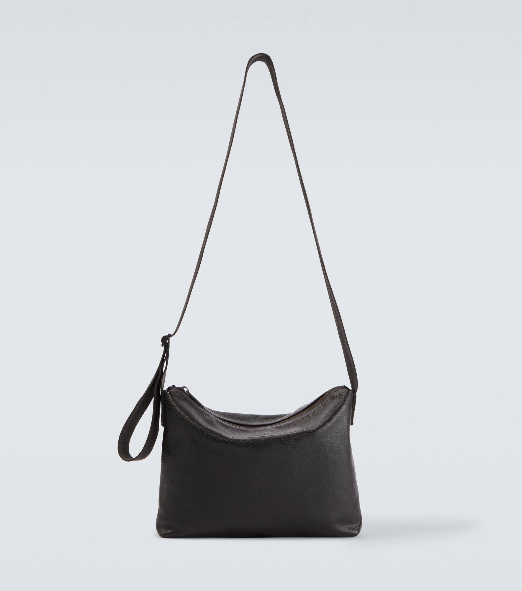 Designed to transcend seasons and trends, Lemaire's styles strike the perfect balance between quality and functionality. The Folio crossbody bag combines both with its t Small silhouette and adjustable shoulder strap, crafted from soft leather. Product Details - Material: calf leather - Lining: fabric - Made in Spain - Designer color name: Dark Chocolate - Item color: brown - Closure: zipped top - Internal details: single compartment, internal zipped pocket - Trim: polyamide - Adjustable shoulder strap - Includes: dust bag - Item number: P01082463 Size & Fit - Height 18,5cm-7.5" - Width 26cm-10" - Depth 3,5cm-1.5" - Adjustable shoulder strap - Min. length shoulder strap 31cm-12" - Max. length shoulder strap 118cm-46.5"