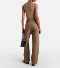 Product Details - Material: 55% polyester, 45% wool - Care instructions: dry clean - Made in Slovakia - Designer color name: Taupe Melange - Lining: 100% cotton - Closure: zipper fly, button and hook fastenings - Pockets: side slit pockets, back pockets, welt pockets - Item number: P00890762 Size & Fit - Fits large to size - we recommend trying one size smaller - Non-stretchy fabric - Straight leg - High-waisted - The model seen in the picture is 178cm-5'10" and wearing a size FR 34
