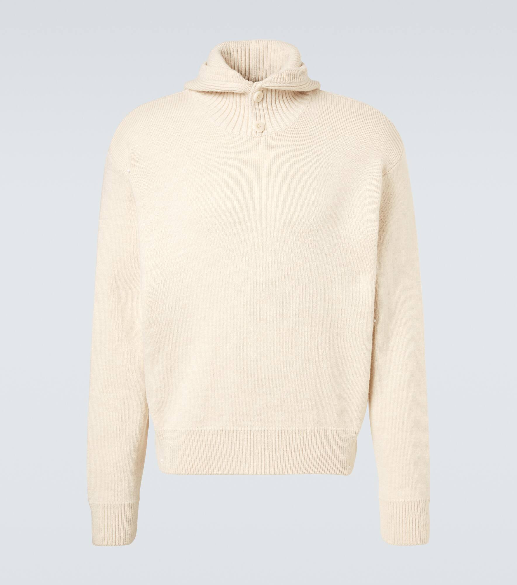 Designed to transcend seasons and trends, Lemaire's styles strike the perfect balance between quality and functionality. Crafted from a soft alpaca and wool blend, this sweater features a hood and ribbed-knit trims. Product Details - Material: 45% acrylic, 40% alpaca wool, 15% wool - Care instructions: hand wash - Made in Portugal - Designer color name: Light Cream - Item color: white - Hood - Cuff: ribbed - Hem: ribbed - Item number: P01082432 Size & Fit - True to size - Dropped shoulders - Straight fit - Stretchy fabric - Falls to the hip - The model in the picture is 185cm-6'1" and wearing a size L