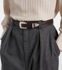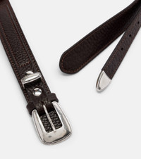 This Lemaire belt channels a Western aesthetic with its thick silver-toned buckle. The accessory is crafted in Italy from grained leather and elevates any look with effortless style. Product Details - Material: calf leather - Lining: calf leather - Made in Italy - Designer color name: Dark Brown - Item color: brown - Hardware color: silver - Closure: buckle fastening - Includes: dust bag - Item number: P01056952 Size & Fit - Width 3cm-1" - Buckle width 3.8cm-1.5"