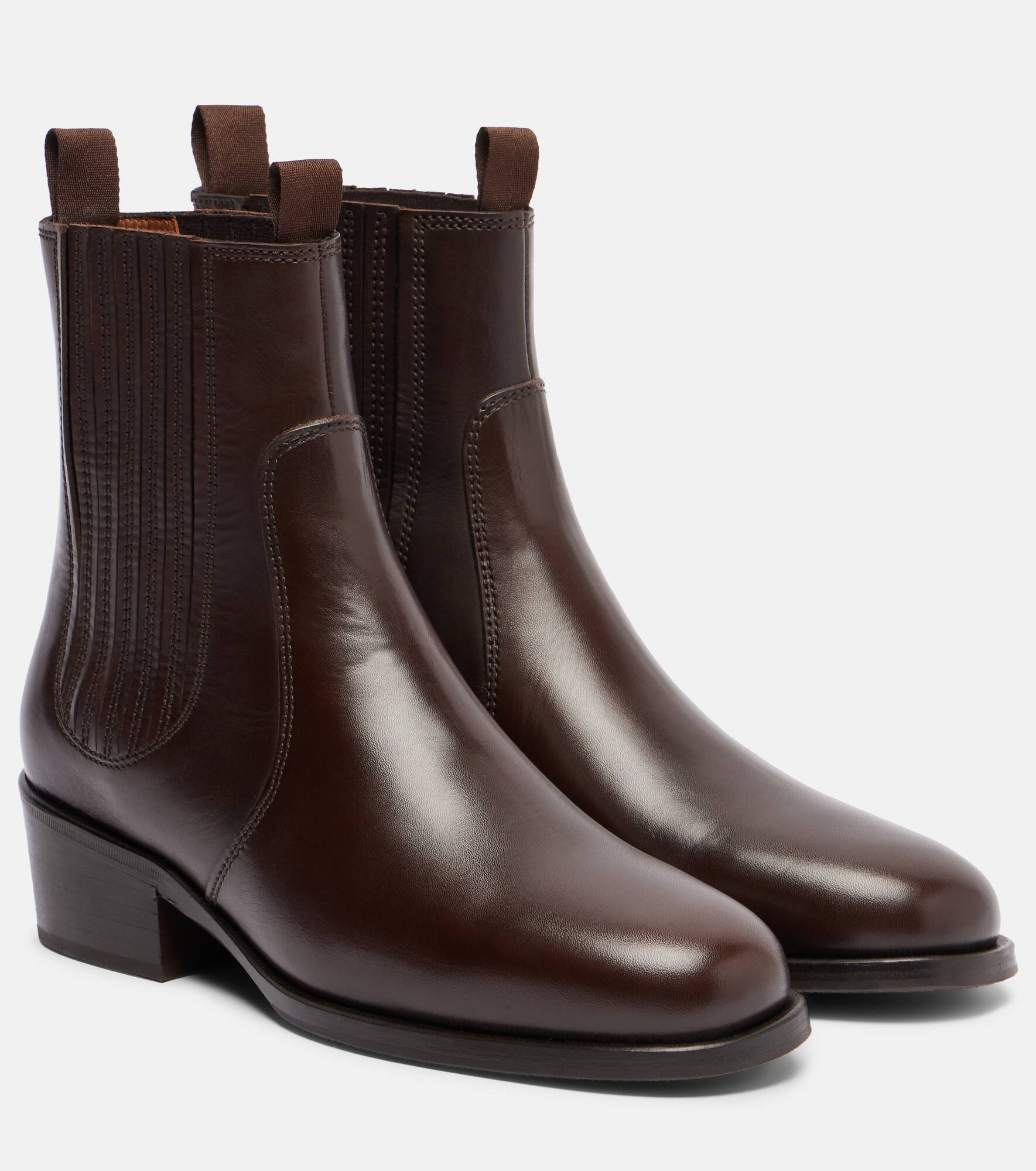 Lemaire's Chelsea style boots are made in Italy from supple leather, and feature elasticated side inserts with pull tabs so you can slip them on with ease, and are finished with block heels. Product Details - Upper: cow leather - Lining: cow leather - Sole: leather insole, leather and rubber sole - Toe shape: round toe - Made in Portugal - Includes: shoe box - Designer color name: Teck - Item color: brown - Closure: elasticated sides - Item number: P01090628 Size & Fit - True to size - Half sizes please take the next size up - European sizes - 4,5cm-2" heel (size EU 38)