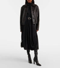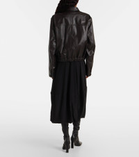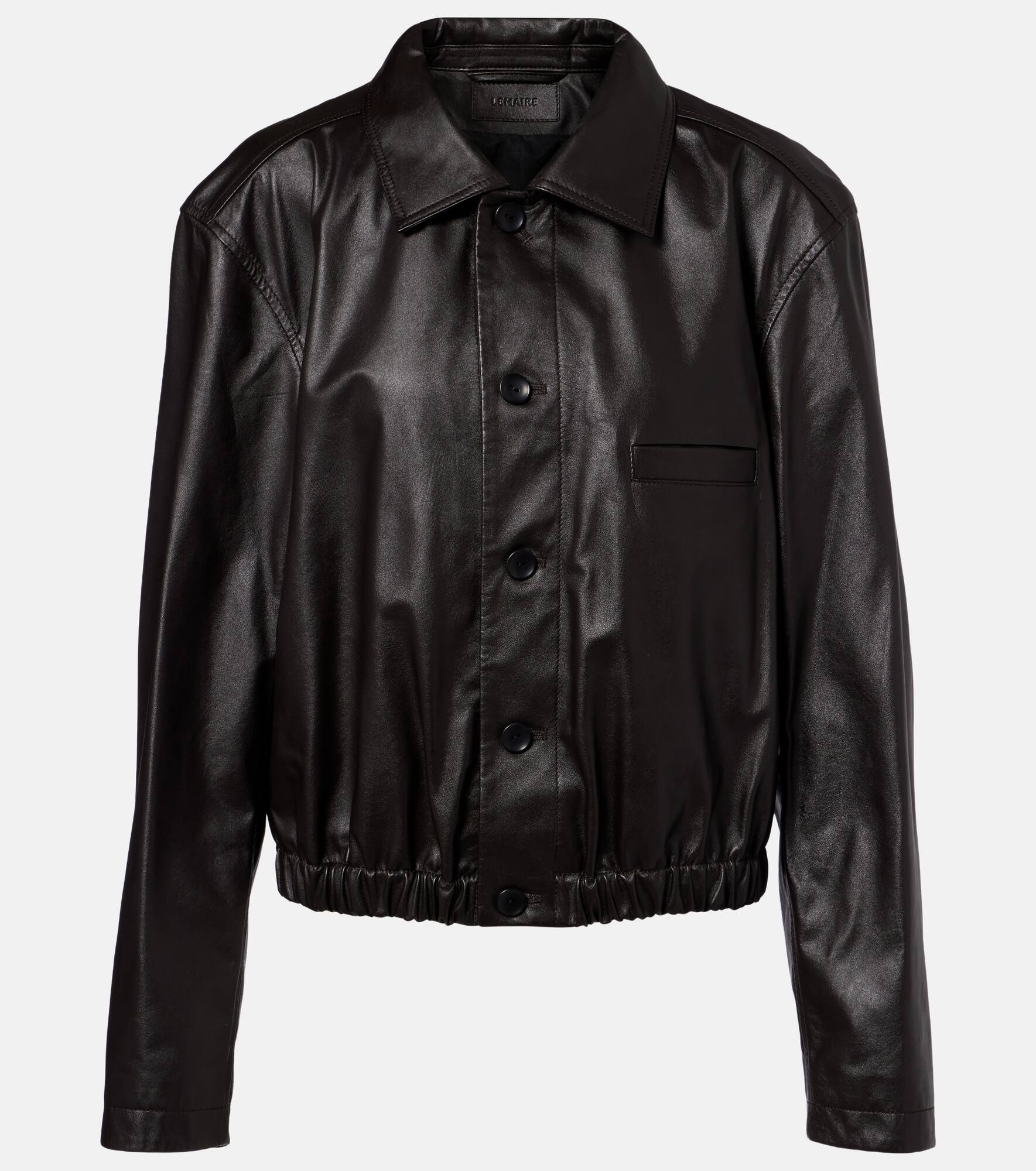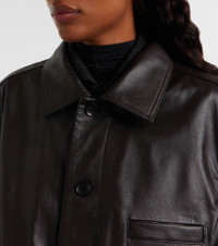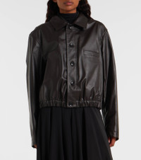 Every wardrobe deserves high-quality leather pieces for versatile styling, and this Lemaire leather jacket is a refined example. The design features a buttoned front, a classic collar, and an elasticated waistband. Product Details - Material: 100% cow leather - Care instructions: specialist clean - Made in Turkey - Designer color name: Black Cherry - Item color: black - Lining: 51% cotton, 49% viscose - Pocket lining: 100% cotton - Closure: buttoned front - Pockets: internal pocket, side slit pockets, breast pocket - Cuff: buttoned - Hem: elasticated - Item number: P01089252 Size & Fit - True to size - Dropped shoulders - Designed for a loose fit - Elasticated hem - Non-stretchy fabric - Slightly cropped - The model seen in the picture is 178cm-5'10" and wearing a size XS