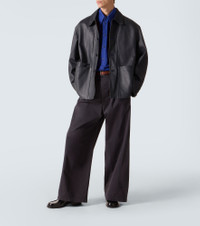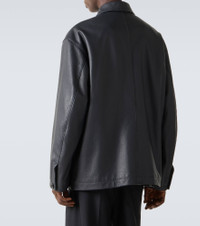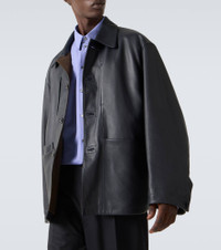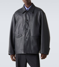 This Lemaire jacket is crafted from supple leather and showcases a classic collar and buttoned front. The slightly oversized, straight-fit silhouette makes it a stylish piece for effortless layering from day to night. Product Details - Material: 100% cow leather - Care instructions: specialist clean - Made in Turkey - Designer color name: Asphalt - Item color: gray - Lining: 100% cotton - Lining II: 100% cotton - Contains non-textile parts of animal origin - Cuff: buttoned - Pockets: patch pockets - Closure: buttoned front - Item number: P01082405 Size & Fit - True to size - Dropped shoulders - Designed for a loose fit - Non-stretchy fabric - Falls below the hip - The model in the picture is 185cm-6'1" and wearing a size L