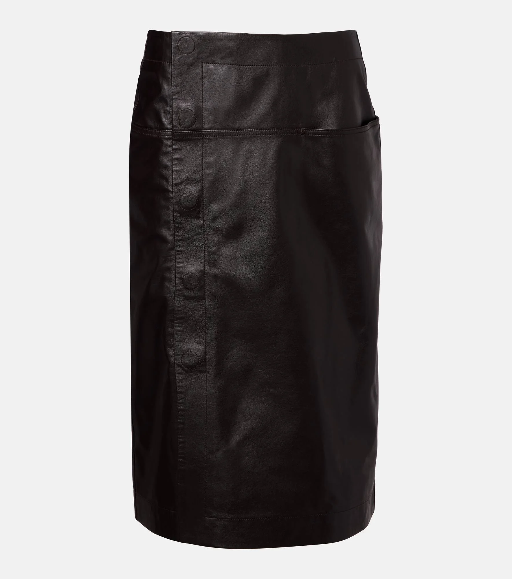 Designed to transcend seasons and trends, Lemaire's styles strike the perfect balance between quality and functionality. This midi skirt is expertly crafted from leather and comes in a wrap-inspired silhouette with a snap-button closure. Product Details - Material: 100% leather - Care instructions: specialist clean - Made in Turkey - Designer color name: Black Cherry - Item color: black - Contains non-textile parts of animal origin - Lining: 63% viscose, 37% cotton - Lining II: 100% cotton - Closure: snap-buttoned front, button fastening - Pockets: slit pocket - Item number: P01089256 Size & Fit - True to size - Non-stretchy fabric - The model seen in the picture is 178cm-5'10" and wearing a size XS