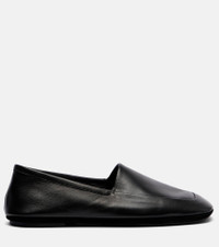 Designed to transcend seasons and trends, Lemaire's styles strike the perfect balance between quality and functionality. Crafted from supple leather, these loafer-inspired slippers bring understated elegance to indoor wear. Product Details - Upper: lamb leather - Lining: leather - Sole: leather insole and sole - Toe shape: square toe - Made in Portugal - Includes: shoe box, dust bag - Designer color name: Black - Item color: black - Item number: P01090569 Size & Fit - True to size - Half sizes please take the next size up - European sizes