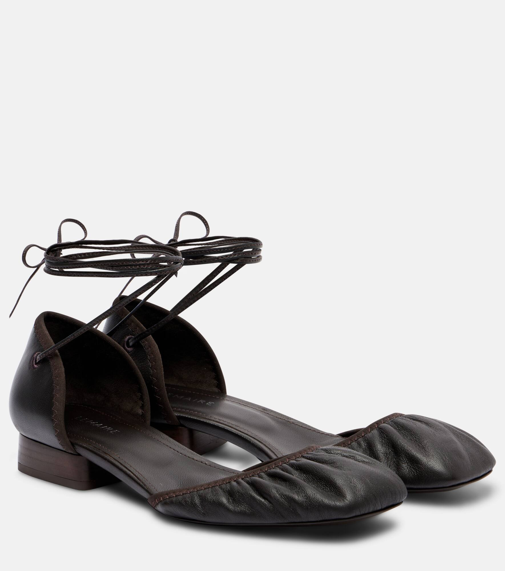 Designed to transcend seasons and trends, Lemaire's styles strike the perfect balance between quality and functionality. The Micro Ballerina flats are crafted from supple leather with rounded toes, elasticated details, and finished with ankle ties. Product Details - Upper: sheep leather - Lining: sheep leather - Sole: leather insole, leather and rubber sole - Toe shape: square toe - Made in Portugal - Includes: shoe box - Designer color name: Dark Chocolate - Item color: brown - Item number: P01090619 Size & Fit - True to size - Slightly narrow at the toe - Half sizes please take the next size down - European sizes - 2cm-1" heel (size EU 38)