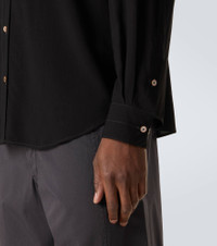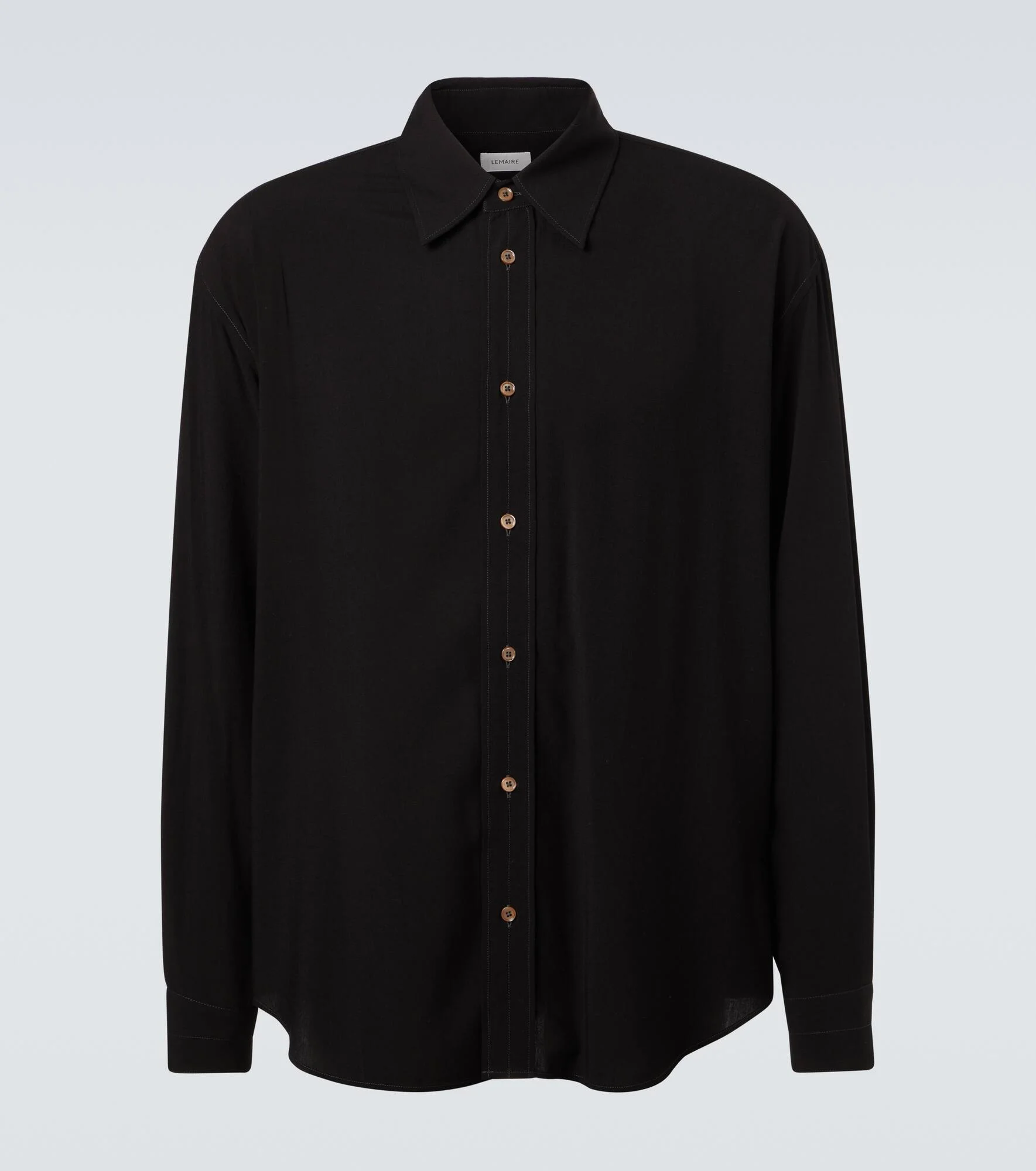 Designed to transcend seasons and trends, Lemaire's styles strike the perfect balance between quality and functionality. This shirt is crafted from a lightweight material and boasts an oversized fit. Product Details - Material: 85% viscose, 15% wool - Care instructions: machine wash at 30 degrees - Made in Tunisia - Designer color name: Caviar - Item color: black - Collar: classic (Straight point) - Cuff: buttoned - Closure: buttoned front - Item number: P01082426 Size & Fit - True to size - With pleats in the back - Oversized - Non-stretchy fabric - Falls below the hip - The model in the picture is 185cm-6'1" and wearing a size IT 50