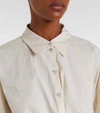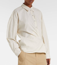 Designed to transcend seasons and trends, Lemaire's styles strike the perfect balance between quality and functionality. Adjustable at the waist, this twisted shirt is made of cotton and silk and features dropped shoulders and button placket closure. Product Details - Material: 80% cotton, 20% silk - Care instructions: dry clean - Made in Portugal - Designer color name: Light Cream - Item color: beige - Closure: buttoned placket, self-ties - Cuff: buttoned - Item number: P01089280 Size & Fit - Fits large to size - we recommend trying one size smaller - Dropped shoulders - Cinched waist - Non-stretchy fabric - Falls to the hip - The model seen in the picture is 178cm-5'10" and wearing a size FR 34