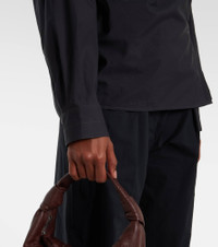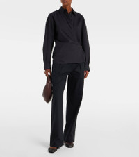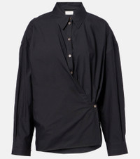Designed to transcend seasons and trends, Lemaire's styles strike the perfect balance between quality and functionality. Adjustable at the waist, this twisted shirt is made of cotton and silk and features dropped shoulders and button placket closure. Product Details - Material: 80% cotton, 20% silk - Care instructions: dry clean - Made in Portugal - Designer color name: Squid Ink - Item color: black - Closure: buttoned placket, self-ties - Collar: classic (Straight point) - Cuff: buttoned - Item number: P01089283 Size & Fit - Fits large to size - we recommend trying one size smaller - Dropped shoulders - Cinched waist - Non-stretchy fabric - Falls to the hip - The model seen in the picture is 178cm-5'10" and wearing a size FR 34