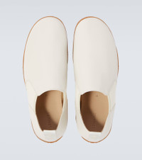 Designed to transcend seasons and trends, Lemaire's styles strike the perfect balance between quality and functionality. The Vibram Glove slip-on shoes are crafted from nappa leather with elasticated sides for easy on-and-off. Product Details - Upper: lamb leather - Lining: leather, fabric - Sole: leather insole, rubber sole - Toe shape: round toe - Made in Portugal - Includes: shoe box - Designer color name: Milk - Item color: white - Closure: elasticated sides - Item number: P01082451