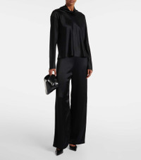 Product Details - Material: 75% acetate, 25% polyester - Care instructions: dry clean - Made in the USA - Designer color name: Black - Elasticated waistband - Item number: P01012421 Size & Fit - True to size - Elasticated waist - Non-stretchy fabric - Wide-leg - The model seen in the picture is 178cm-5'10" and wearing a size XS