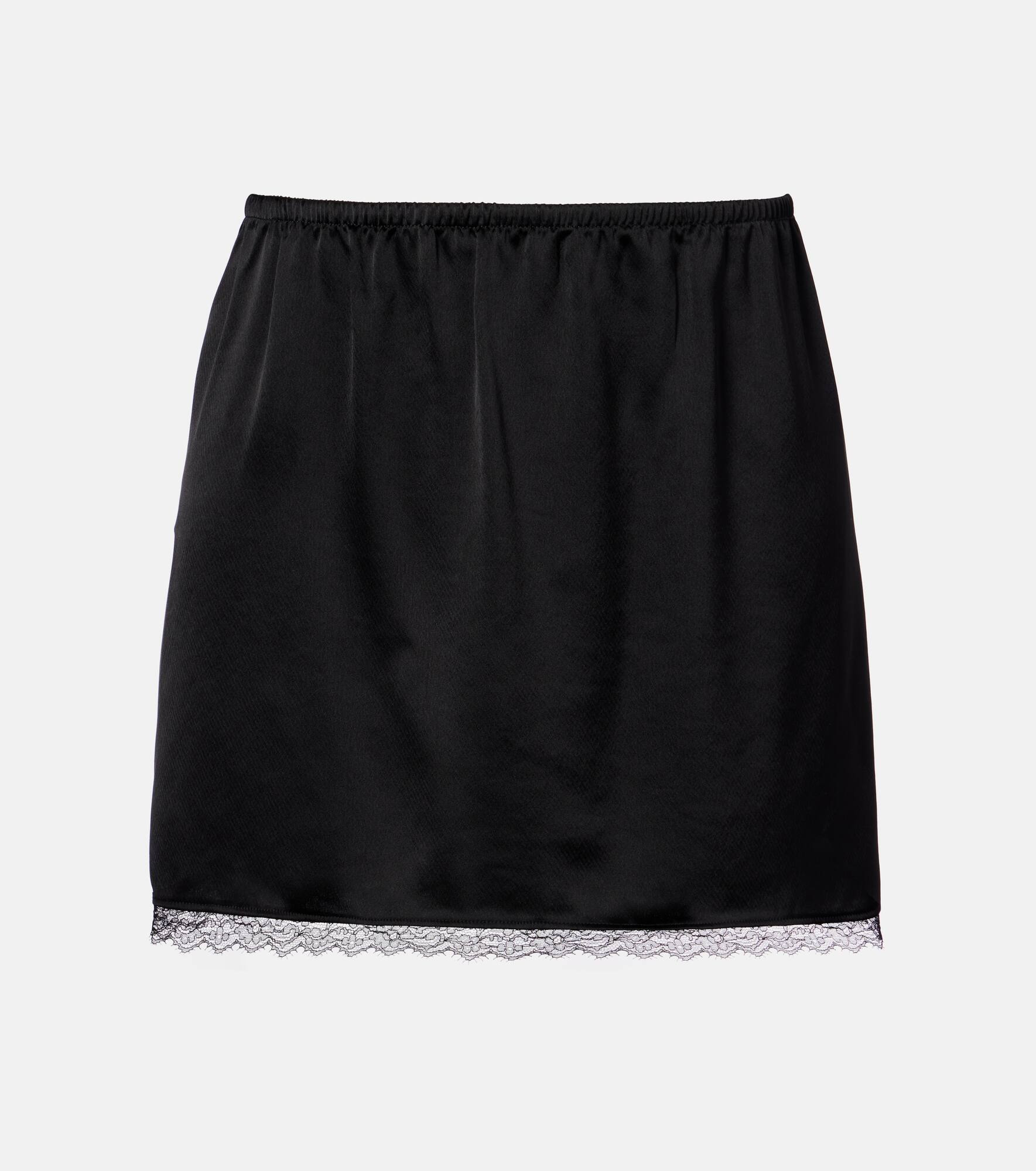 Barb Lace-Trimmed Satin Mini Skirt black