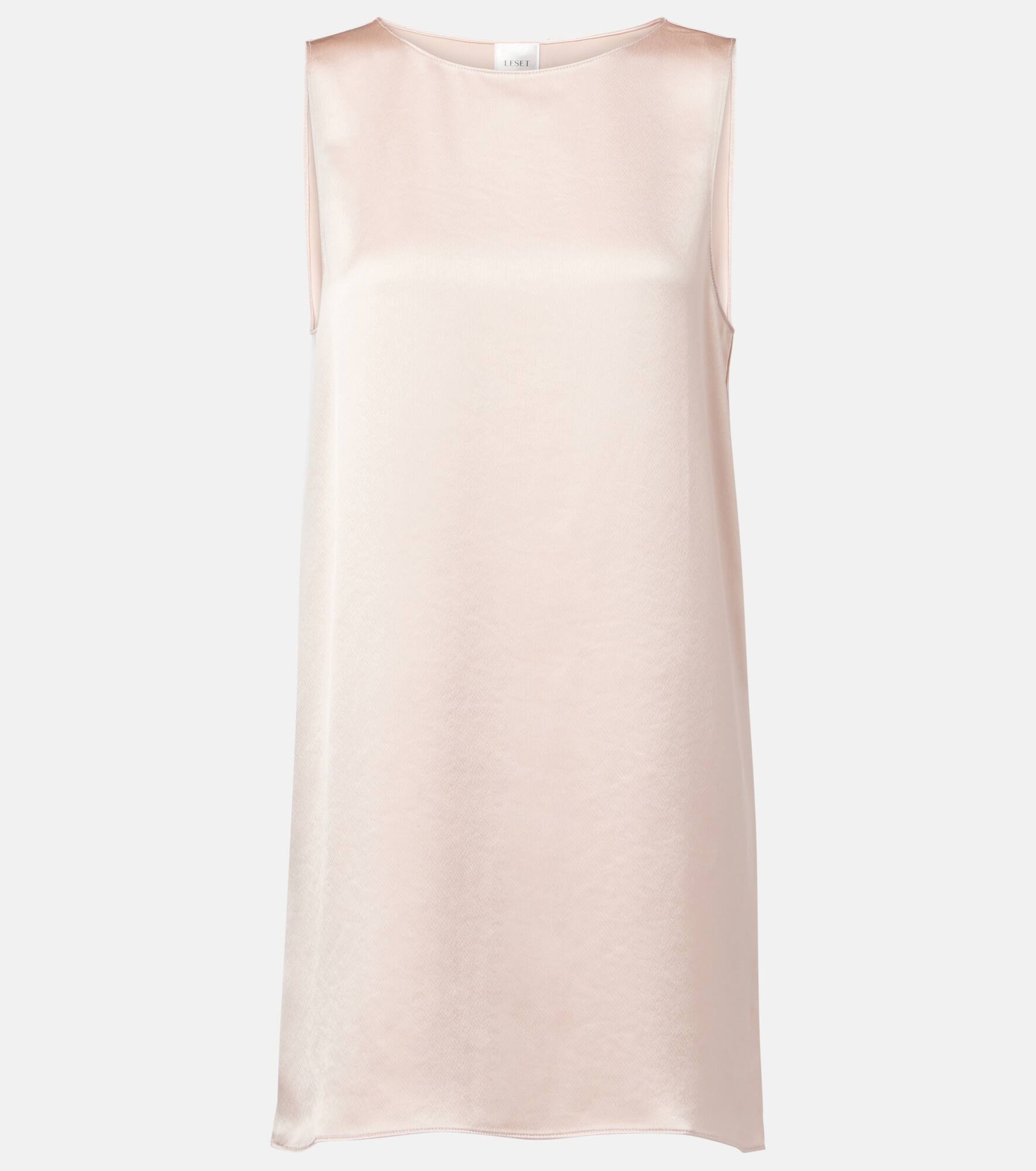 Versatile and timeless, Leset's pieces lay the foundations for a sophisticated wardrobe. Primed for day-to-night ensembles, the Barb sleeveless minidress is made from lustrous satin and is completed with a round neckline. Product Details - Material: 75% acetate, 25% polyester - Care instructions: dry clean - Made in the USA - Designer color name: Sakura - Item color: pink - Item number: P01040269 Size & Fit - True to size - Straight fit - Non-stretchy fabric - The model seen in the picture is 178cm-5'10" and wearing a size XS