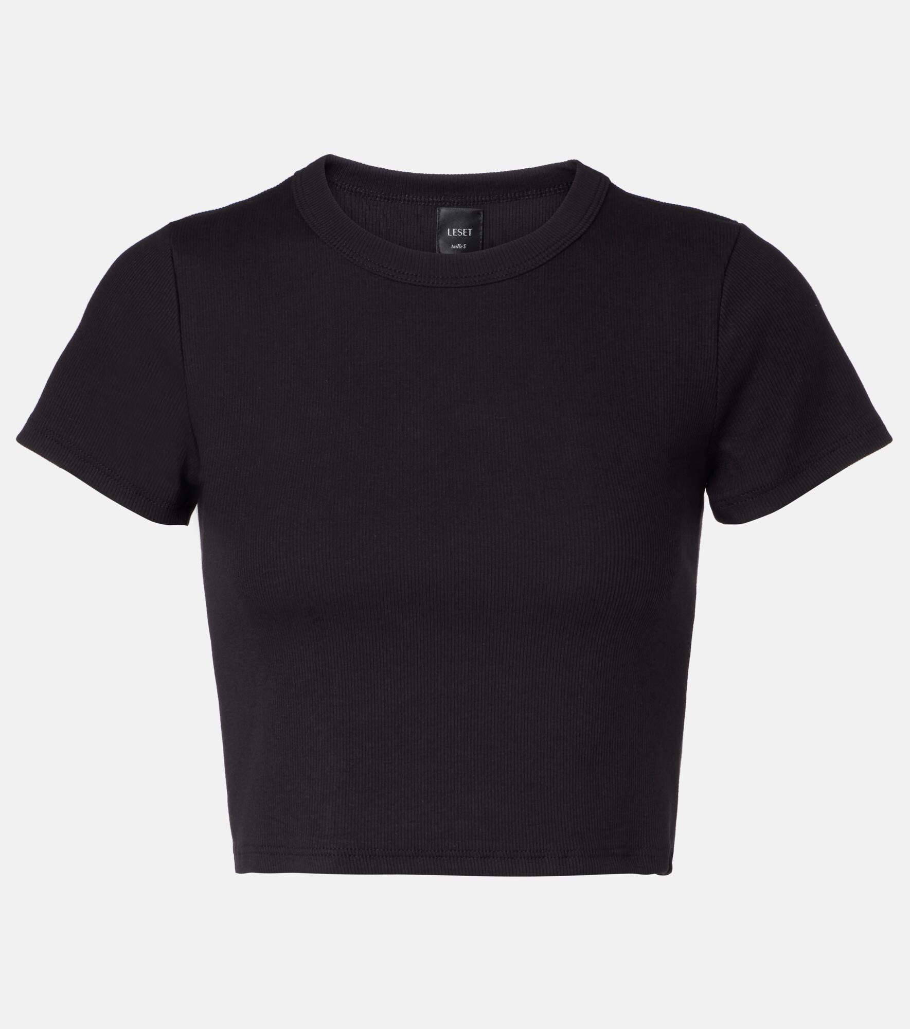 The Kelly T-shirt from Leset is made from a cotton-blend jersey infused with a bit of stretch. The crewneck design has a cropped silhouette and a clean, tailored finish. Product Details - Material: 92% cotton (organic), 8% elastane - Care instructions: hand wash - Made in the USA - Designer color name: Black - Item color: black - Collar: crewneck - Slim fit - Item number: P01069370 Size & Fit - True to size - Straight fit - Stretchy fabric - Cropped - The model seen in the picture is 178cm-5'10" and wearing a size XS