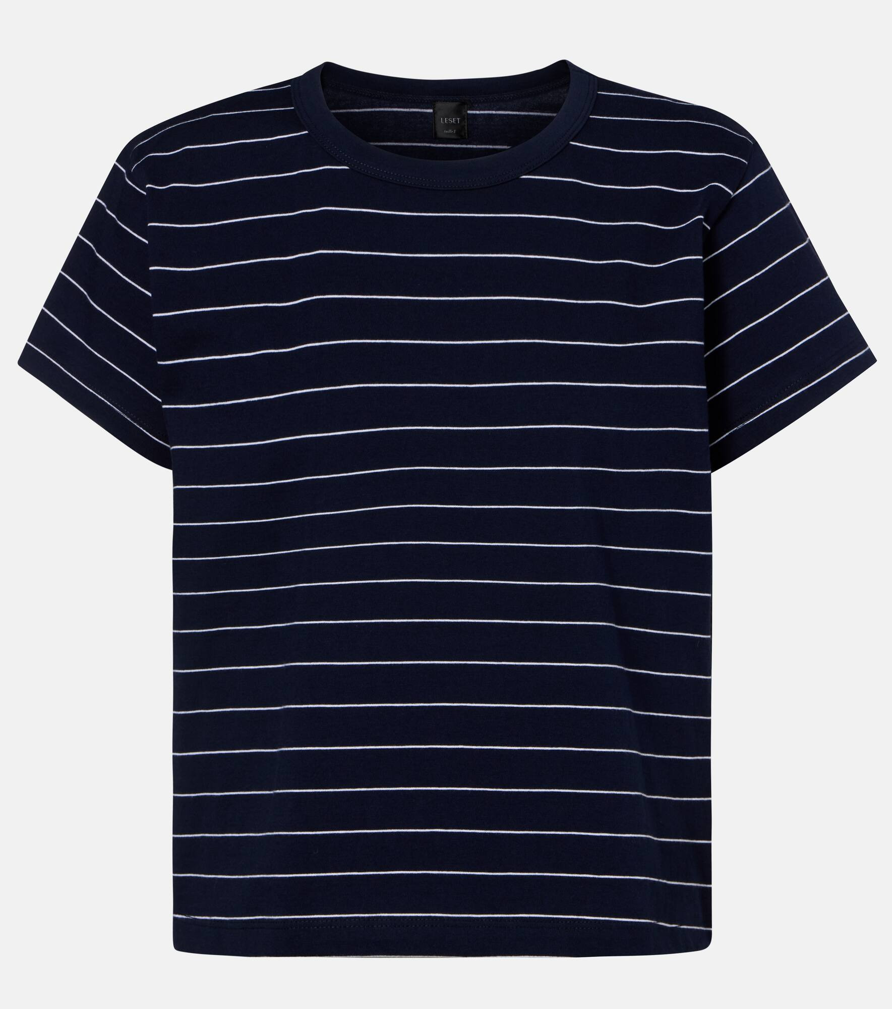 The Margo is the most-loved T-shirt from Leset's collection of everyday essentials. Made from pure cotton jersey, the striped, crewneck piece is subtly cropped and has a slightly boxy silhouette. Product Details - Material: 100% cotton - Care instructions: machine wash cold - Made in the USA - Designer color name: Midnight/Natural Stripe - Item color: blue, white - Collar: crewneck - Item number: P01111984 Size & Fit - True to size - Straight fit - Slightly stretchy fabric - Falls to the hip - The model seen in the picture is 178cm-5'10" and wearing a size XS