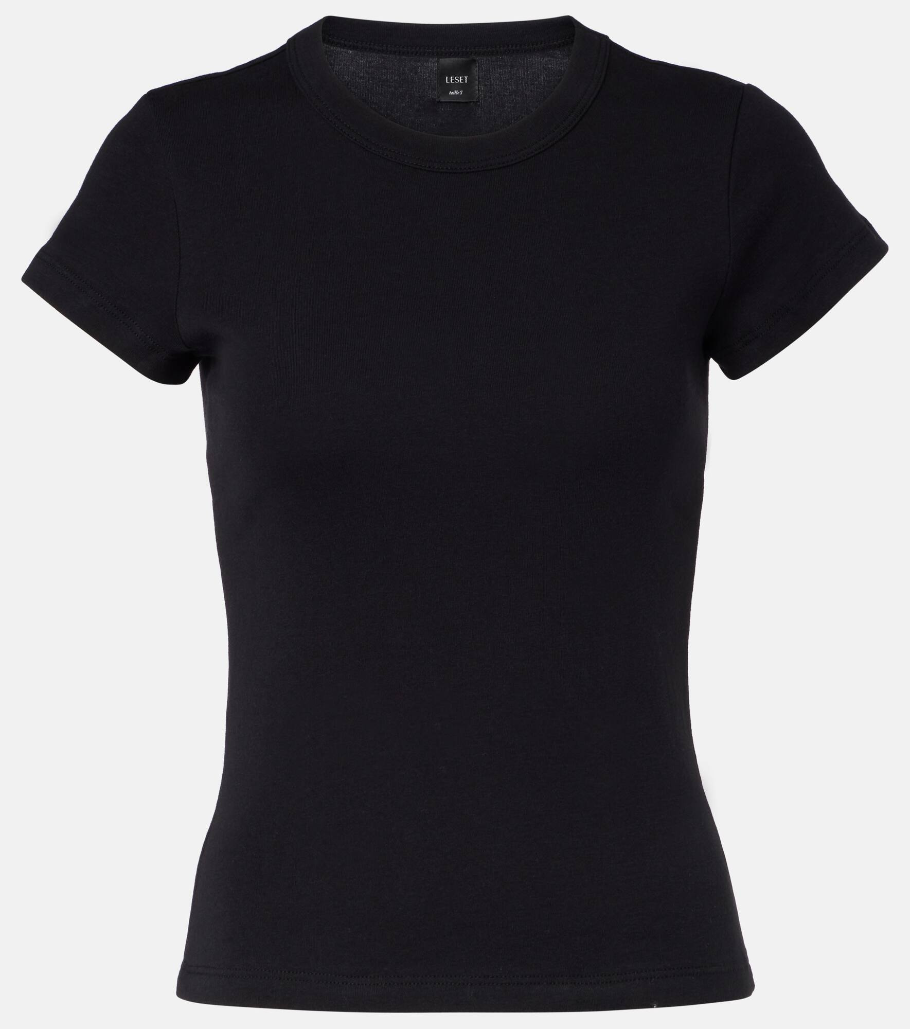 A simple black T-shirt from Leset can introduce a lot of versatility to your daily edit. The Nando is a fitted silhouette with a classic crew neckline and finely ribbed-knit cotton construction. Product Details - Material: 100% cotton - Care instructions: hand wash - Made in the USA - Designer color name: Black - Item color: black - Collar: crewneck - Slim fit - Item number: P01069352 Size & Fit - True to size - Fitted - Stretchy fabric - Falls to the hip - The model seen in the picture is 178cm-5'10" and wearing a size XS