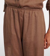 Build your capsule wardrobe with elevated iterations of wardrobe staples like the Niko pants from Leset. Crafted from lightweight ramie, the effortless design features a slightly cropped, barrel-leg silhouette with a soft elasticated waistband. Product Details - Material: 100% ramie - Care instructions: dry clean - Made in the USA - Designer color name: Choco - Item color: brown - Pockets: side slit pockets - Elasticated waistband - Item number: P01069344 Size & Fit - True to size - Semi-sheer - Elasticated waist - Non-stretchy fabric - Tapered leg - The model seen in the picture is 178cm-5'10" and wearing a size XS