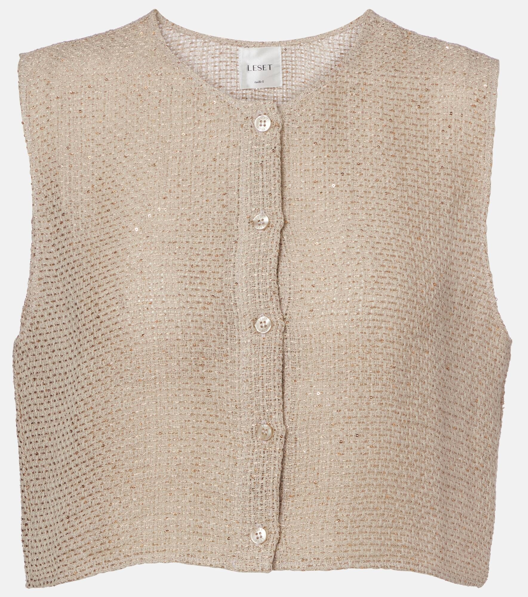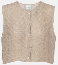 Stella cropped sequin-embellished linen-blend gauze vest Sand