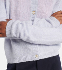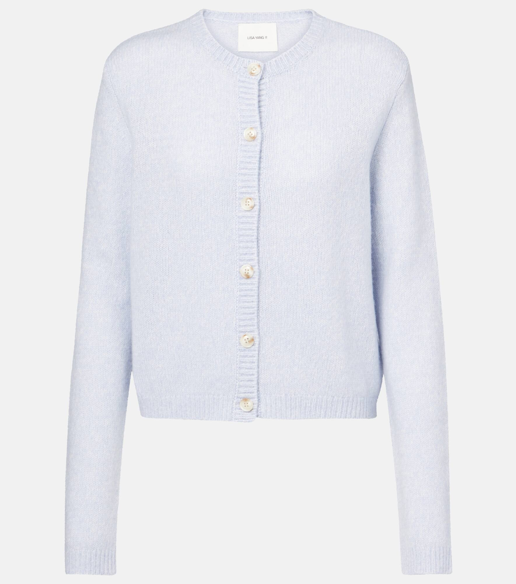Designed in Stockholm and produced in Inner Mongolia, Lisa Yang's knitwear draws inspiration from Scandinavian minimalism and the designer's Chinese heritage. The Felicia cardigan is made a luxurious blend of cashmere and silk with ribbed trims. Product Details - Material: 77% cashmere, 23% silk - Care instructions: dry clean - Made in China - Designer color name: Sea Breeze - Item color: blue - Closure: buttoned front - Collar: crewneck - Contains non-textile parts of animal origin - Item number: P01069821 Size & Fit - True to size - Straight fit - Stretchy fabric - Falls to the hip - The model seen in the picture is 178cm-5'10" and wearing a size 0