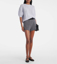 Designed in Stockholm and produced in Inner Mongolia, Lisa Yang's knitwear draws inspiration from Scandinavian minimalism and the designer's Chinese heritage. Knitted from cashmere and silk the Kenzie sweater features puffed sleeves and ribbed trims on a cropped silhouette. Product Details - Material: 77% cashmere, 23% silk - Care instructions: dry clean - Made in China - Designer color name: Sea Breeze - Item color: blue - Contains non-textile parts of animal origin - Item number: P01069808 Size & Fit - True to size - Dropped shoulders - Semi-sheer - Designed for a loose fit - Stretchy fabric - Falls to the hip - The model seen in the picture is 178cm-5'10" and wearing a size 0