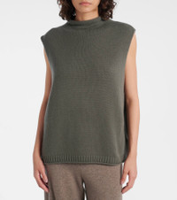 Modernize your knitwear collection with styles like this top, featuring a mockneck and wide side openings. Made from GOTS-certified cashmere, this garment embodies Lisa Yang's brand motif, which refers to the soft and gentle feeling of the fiber. Product Details - Material: 100% cashmere - Care instructions: hand wash - Made in China - Designer color name: Fern - Item color: green - Sleeves: short-sleeved - Collar: mockneck - Contains non-textile parts of animal origin - Item number: P01069912 Size & Fit - True to size - Designed for a loose fit - Slightly stretchy fabric - Falls to the hip - The model seen in the picture is 178cm-5'10" and wearing a size 0