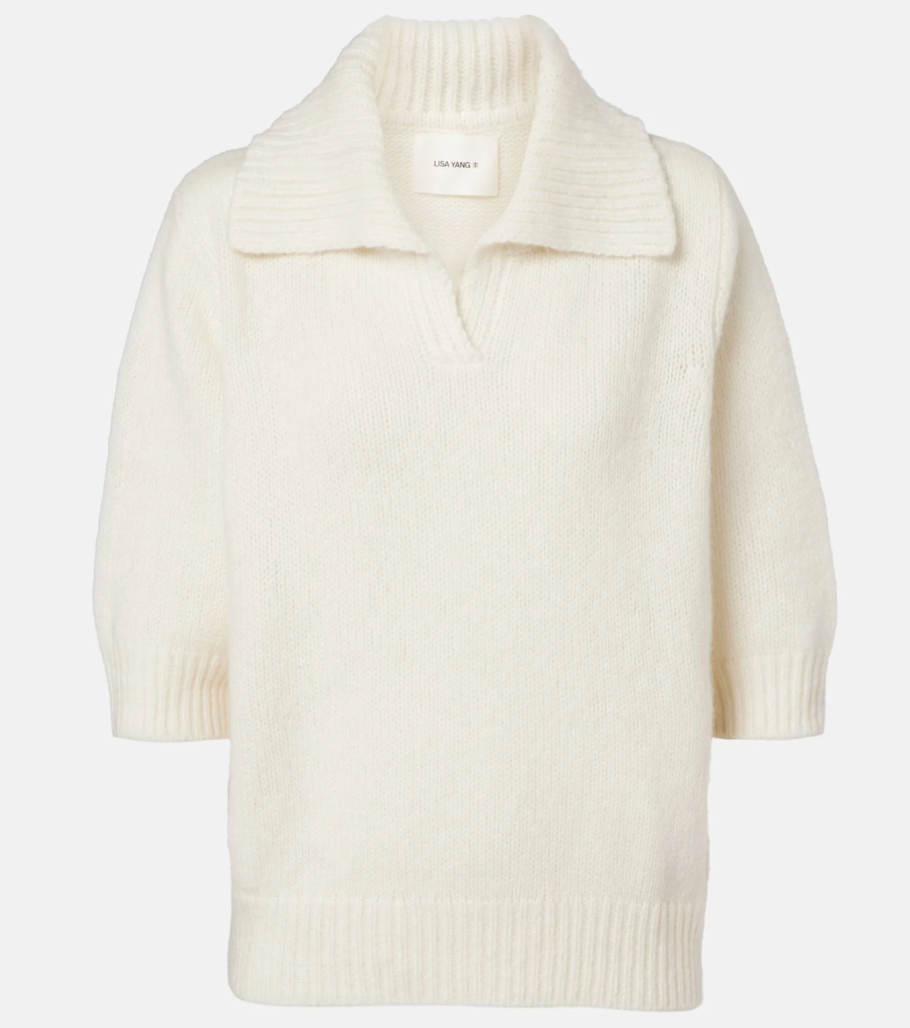 Designed in Stockholm and produced in Inner Mongolia, Lisa Yang's knitwear draws inspiration from Scandinavian minimalism and the designer's Chinese heritage. The Lailai polo sweater is finely knitted from a cashmere and silk blend and finished with ribbed-knit trims. Product Details - Material: 77% cashmere, 23% silk - Care instructions: dry clean - Made in Inner Mongolia - Color: white - Designer color name: Cream - Item color: white - Collar: polo collar - Hem: ribbed - Item number: P01134447 Size & Fit - True to size - Designed for a loose fit - Stretchy fabric - Falls to the hip - The model seen in the picture is 178cm-5'10" and wearing a size 0