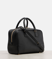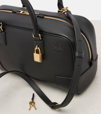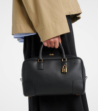 All of Loewe's leather goods are handcrafted in Spain, reflecting the house's centuries-long expertise and artisanal methods. Made from nappa calfskin leather, the Amazona 28 tote bag comes in a timeless silhouette enriched with an Anagram motif and gold-toned hardware, including a padlock. Product Details - Material: leather (nappa) - Lining: suede - Made in Spain - Designer color name: Black - Item color: black - Internal details: internal zipped pocket, card slot - Closure: two-way zipped top - Detachable padlock - Protective feet - Item number: P01102261 Size & Fit - Height 18cm-7" - Width 29cm-11.5" - Depth 10,5cm-4" - Length of handles 30cm-12" - Adjustable shoulder strap - Max. length shoulder strap 113cm-44.5"
