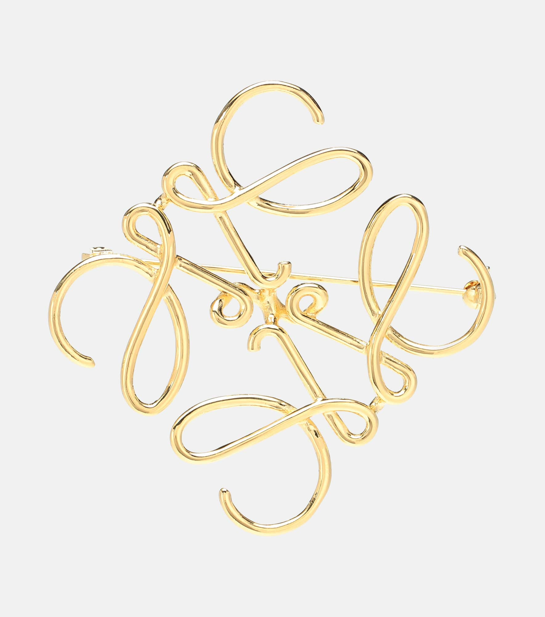Add LOEWE's interlocking Anagram logo to every look thanks to this gold-plated metal brooch. The dainty design will add a high-shine finish to everything from blouses and dresses to hats and bags. Product Details - Material: gold-plated metal - Made in Spain - For pierced ears - Designer color name: Gold - Item number: P00420529 Size & Fit - Length 6,5cm-2.5" - Max. width 6,5cm-2.5"