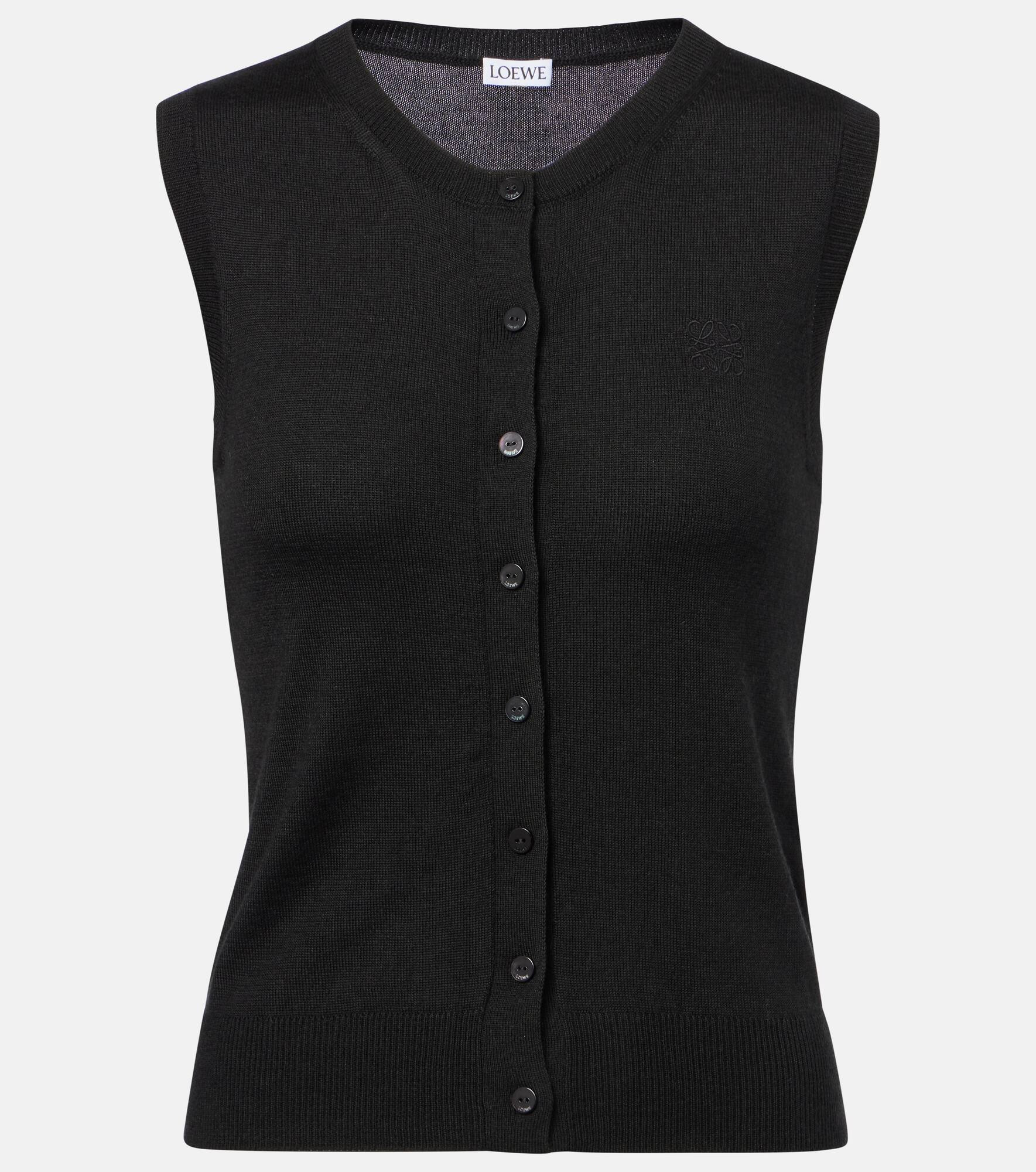 Knit from cashmere and silk, this top is shaped to hug the figure and features a buttoned front and signature emblem detailing at the chest. The Anagram logo was designed by the Spanish artist Vicente Vela as a quadruple-L insignia that now lends instant recognition to any Loewe piece. Product Details - Material: 78% cashmere, 22% silk - Care instructions: dry clean - Made in Italy - Designer color name: Black - Item color: black - Embroidery: 100% polyester - Item number: P01066261 Size & Fit - True to size - Fitted - Stretchy fabric - Slightly cropped - The model seen in the picture is 178cm-5'10" and wearing a size XS